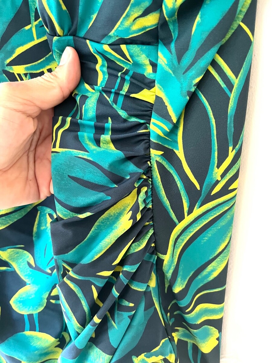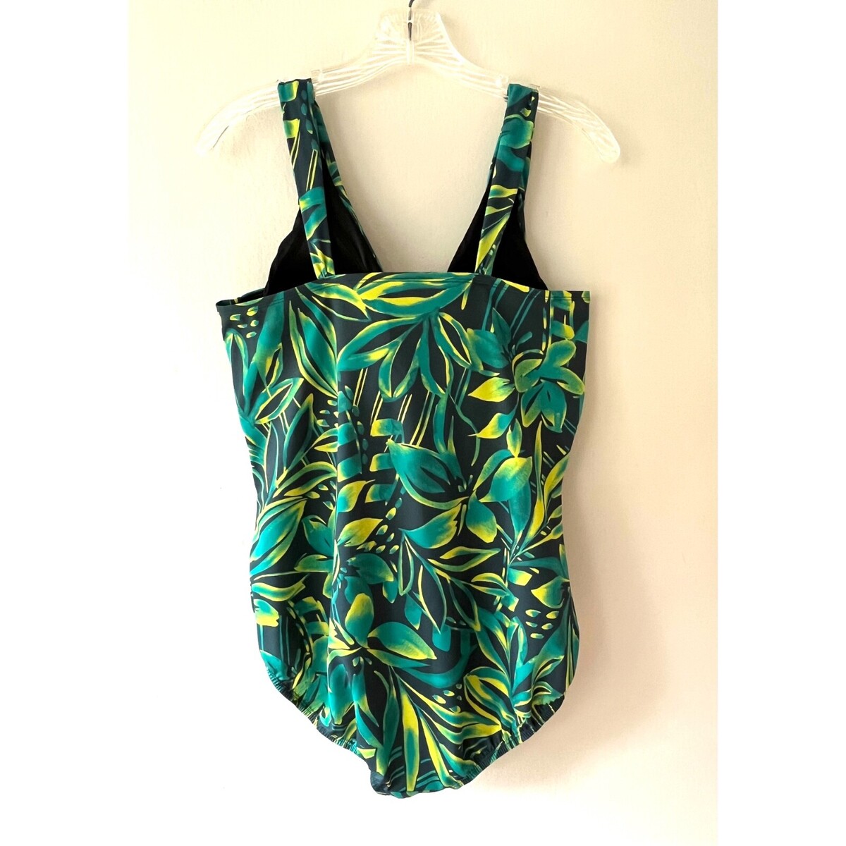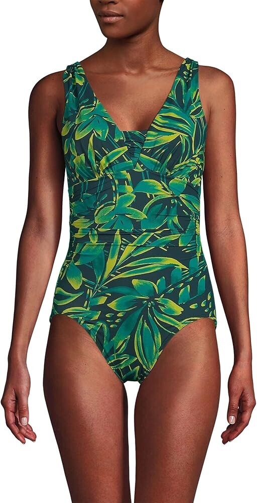 Lands End Plus Size 16 Tummy Ruched One Piece Lined Swimsuit Green Floral