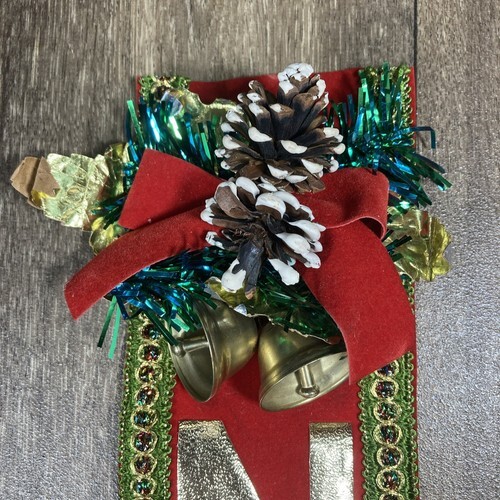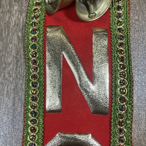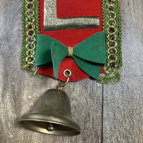 Vintage Christmas Holiday Felt Noel Door Wall Hanging w Bells B