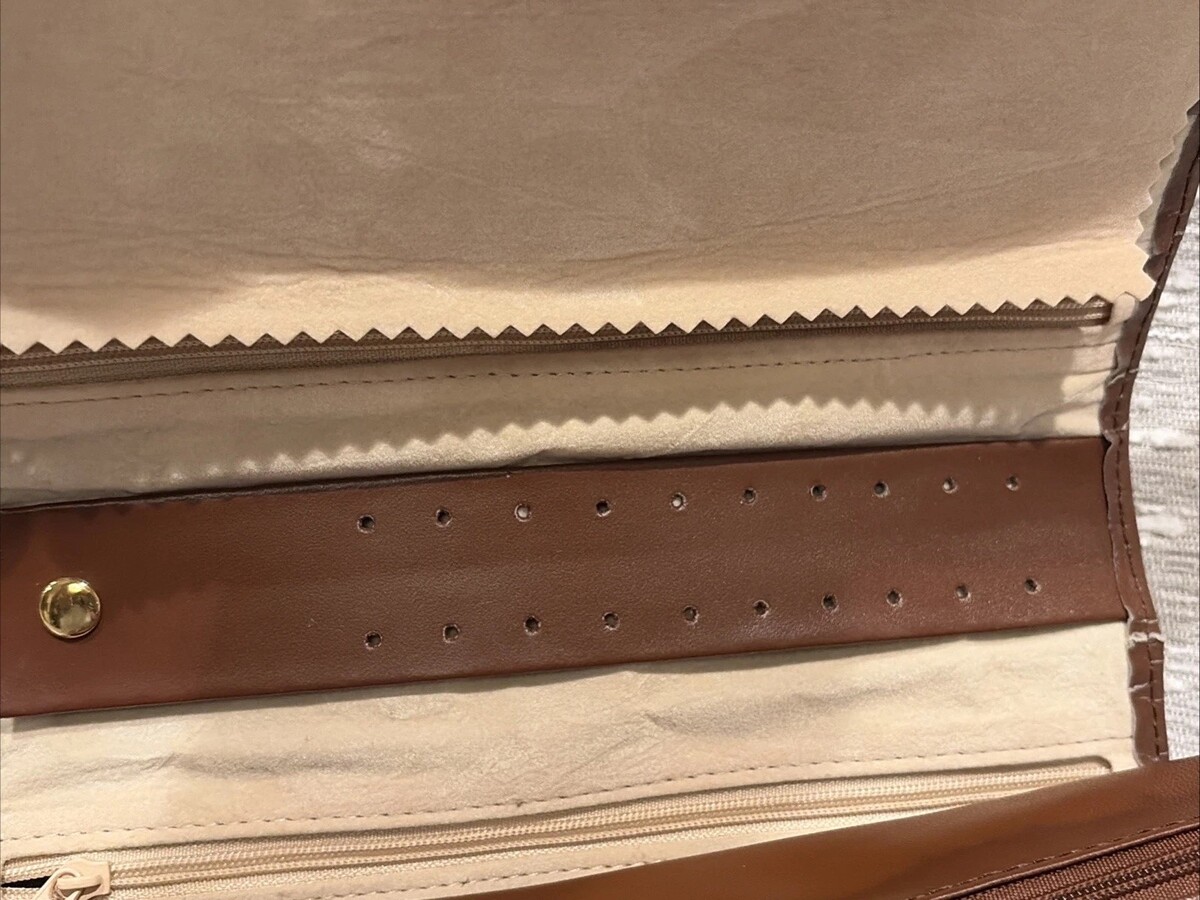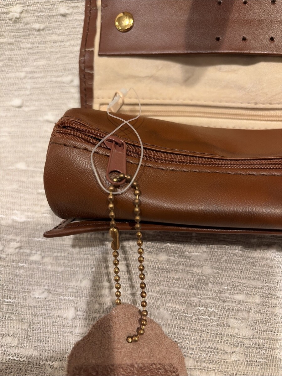 Tuscan Designs Leather Hand Tooled Travel Jewelry Bag Compact Zippers