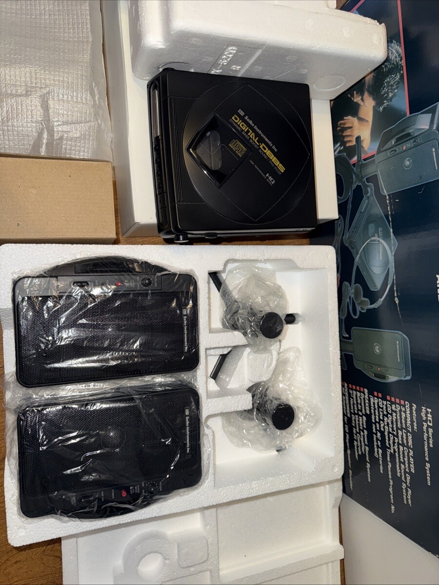 That has almost no use on it. It has been tested. Comes in original box, styrofoam, plastic, and instructions. Super rare to find in this condition. Everything is there except the headphones.