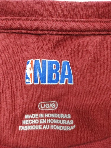 The product is a men's large long sleeve shirt featuring the Cleveland Cavaliers team logo and colors. Made by NBA apparel, the shirt represents the National Basketball Association (NBA) league. It is in support of LeBron James, a key player for the team, and is suitable for fans of the Cleveland Cavaliers. The shirt is in a bold red color and is made in China. Perfect for basketball enthusiasts looking to show their team spirit in style.
