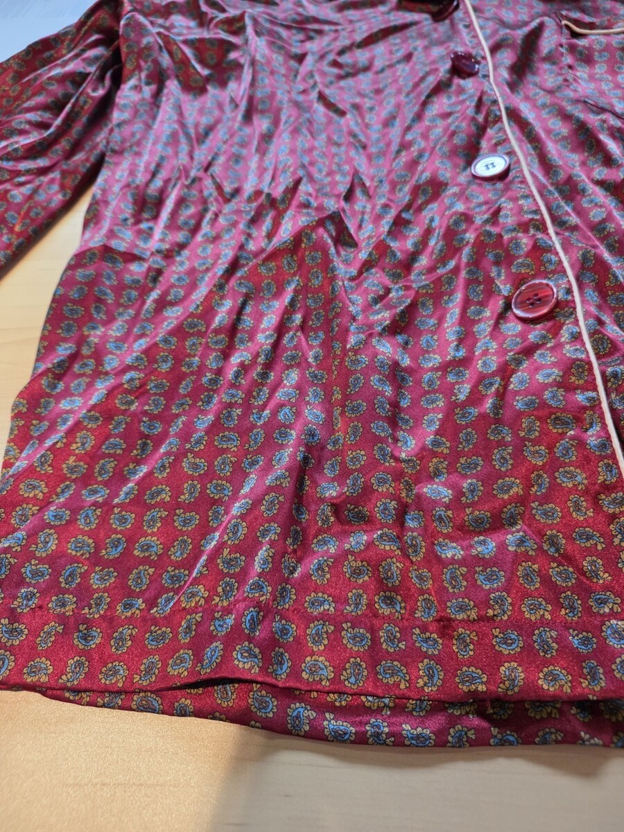 Vtg Victoria Secret Red Velvet Satin Pajama Top Shirt Gold Trim Medium Paisley