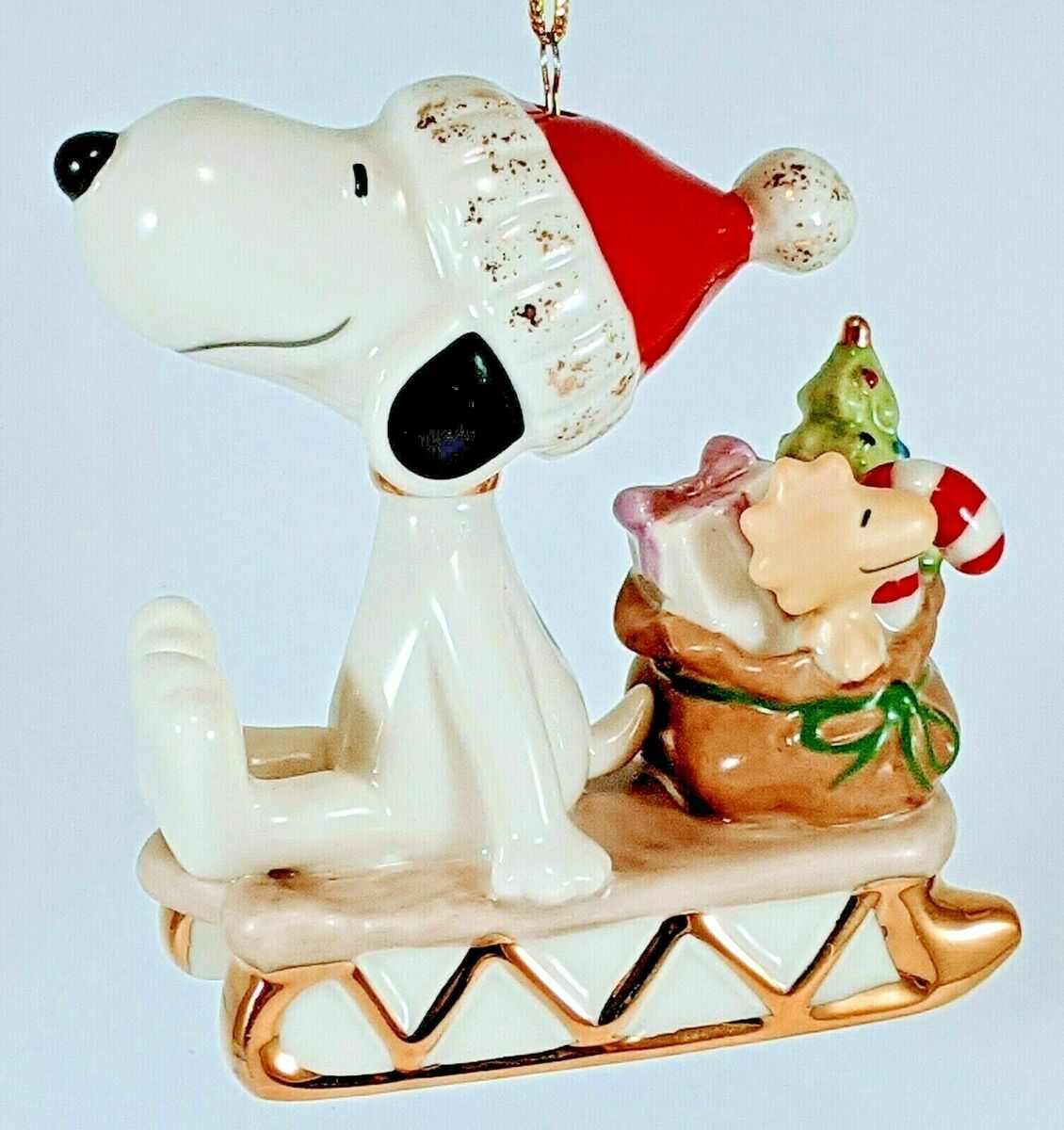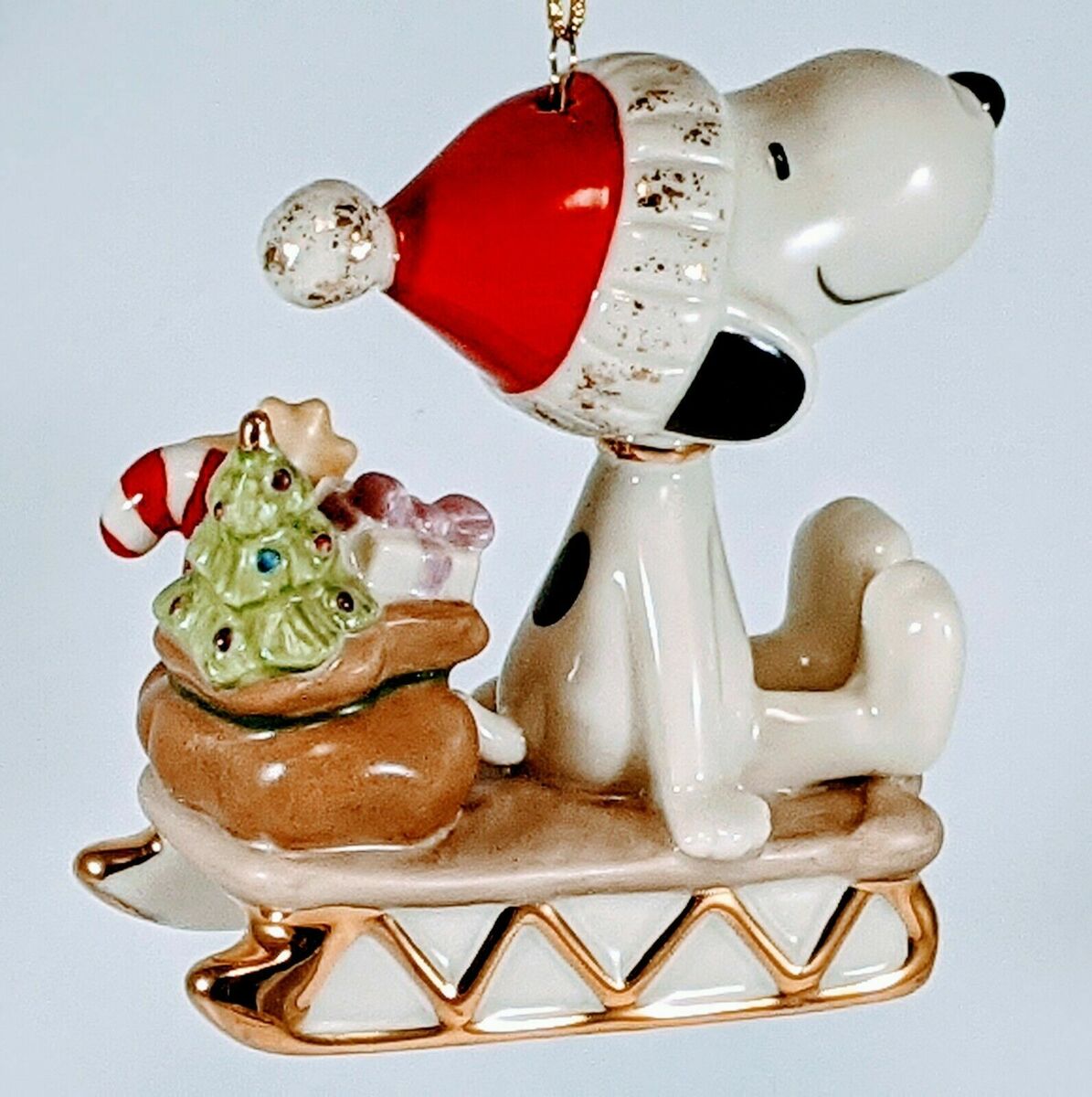Lenox Peanuts Snoopy Sledding Into The Holidays Figurine Ornament Christmas NEW