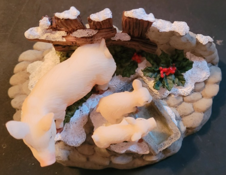 Ceramic Pigs Snow Holly Baby Pigs Trough China O'Well Christmas Tabletop Decor