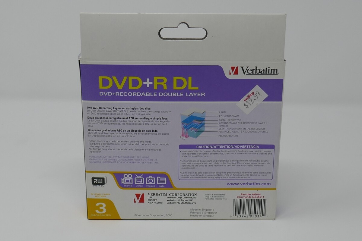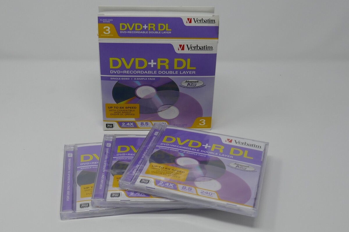 Verbatim DVD+R DL Recordable Double Layer 3 Pack SEALED DISCS