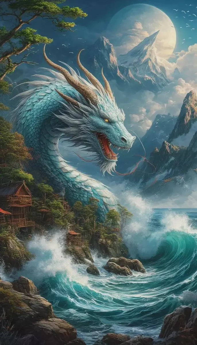 Thalor is a primordial dragon of the deep seas, a titan born from saltwater, storm, and moonlight. His scales shimmer like sapphire waves under the sun, and his eyes hold the endless wisdom of oceans uncharted. With each movement of his massive form, he commands the waters—able to stir tides, summon storms, or calm the sea into glass.