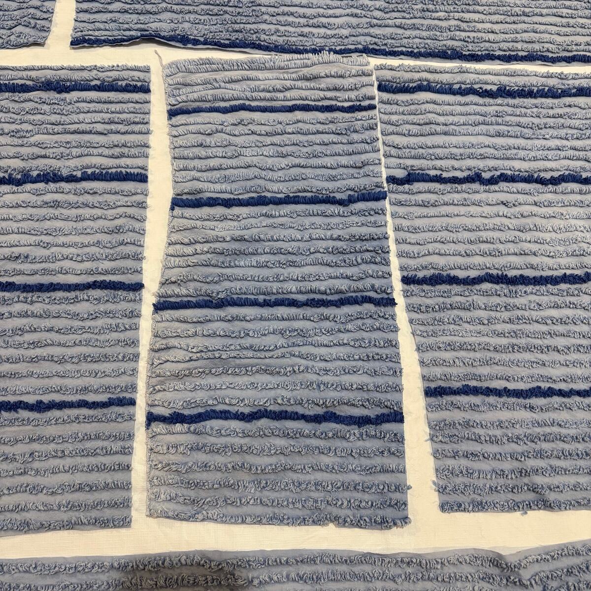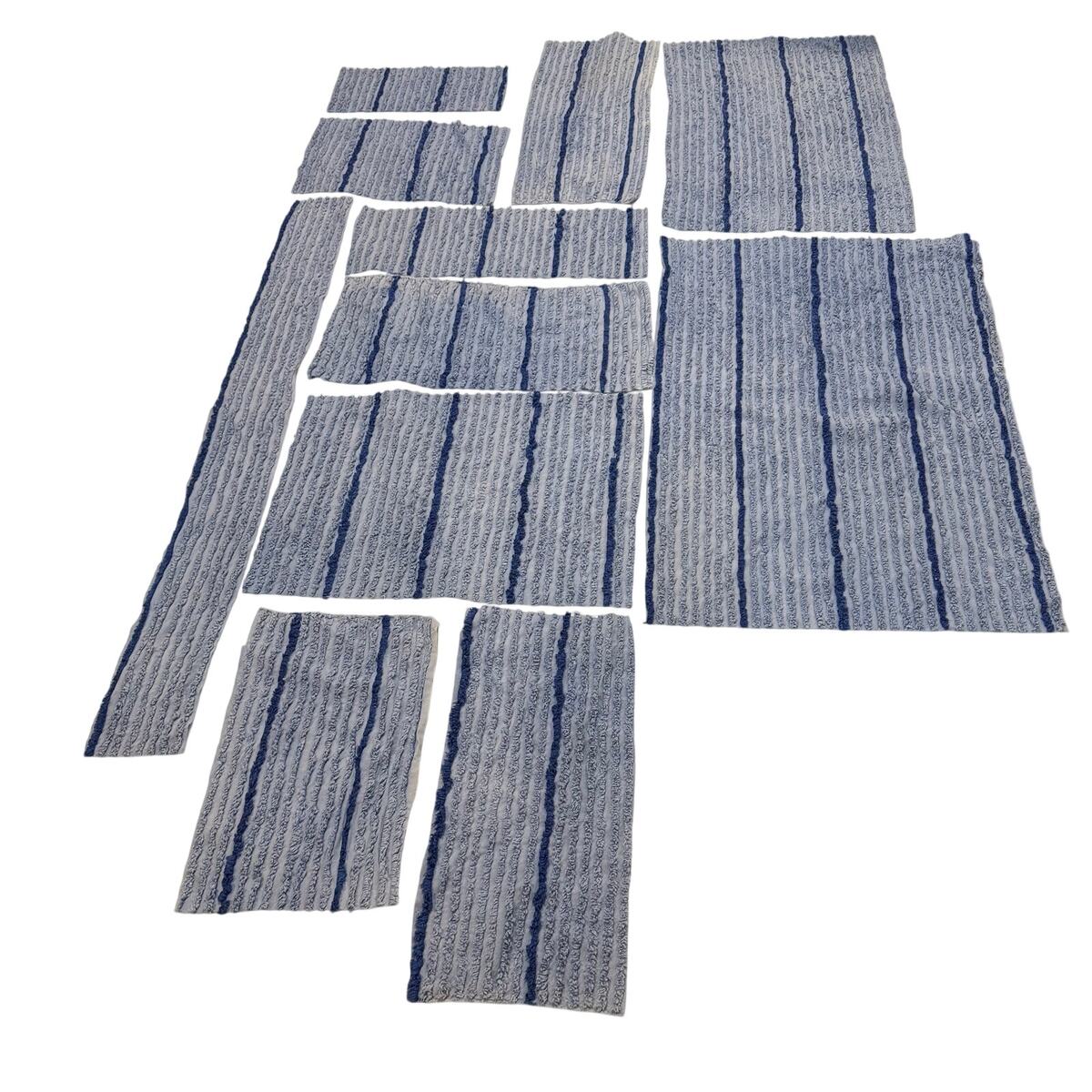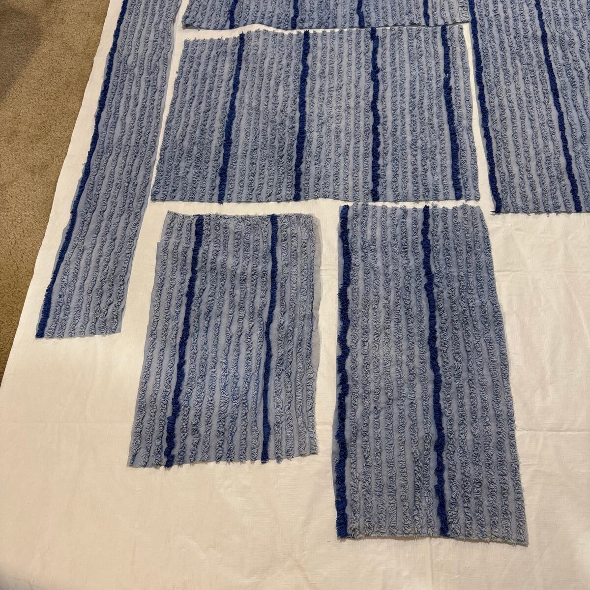 Lot of Blue Striped Chenille Bedspread Cut Pieces Crafts Sewing Quilting Upcycle