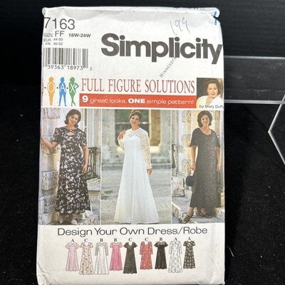 Simplicity 7163 FULL FIGURE SOLUTIONS Princess Dress 9 Ways Sz 18W-24W UNCUT