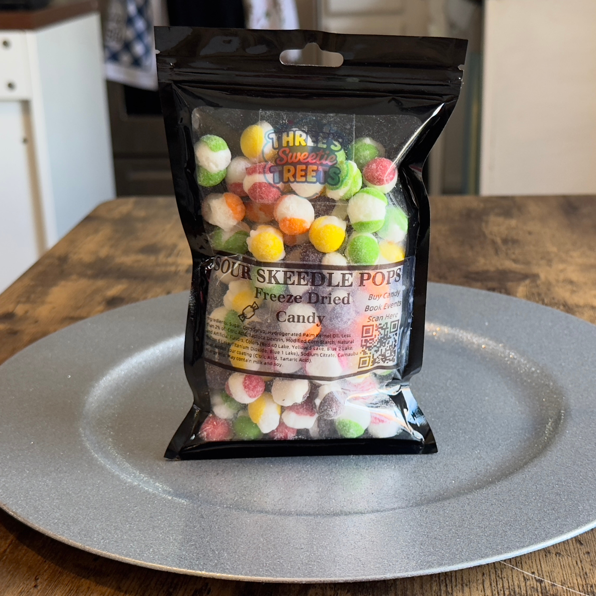 Made from real sour Skittles, Freeze-Dried Sour Skeedle Pops offer an airy crunch with an intense sour kick. The crisp texture amplifies the rainbow of fruity flavors, creating a vibrant sour-to-sweet candy experience.