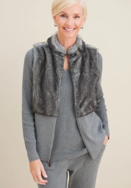 Chico's Zenergy Gray Charcoal Faux Fur Vest and 16 similar items