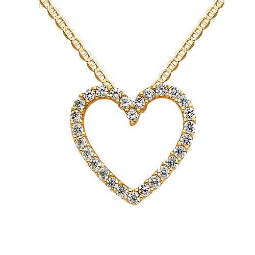 Genuine 14k Yellow Gold 0.59" Women's Cubic Zirconia Heart Slider 18" Necklace
