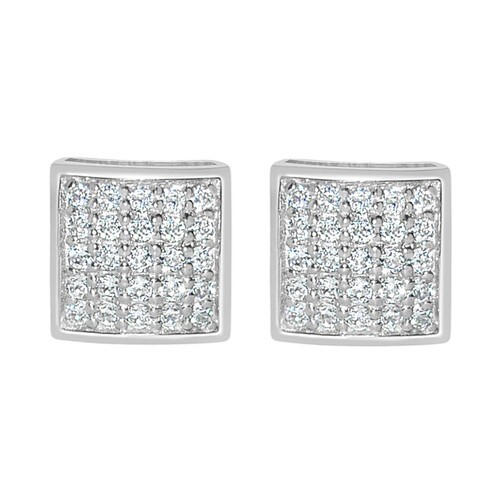 These elegant 14k white gold square-shaped stud earrings feature glittering rows of round-cut cubic zirconia in a micropave setting, designed to dazzle with brilliance. The slightly curved design enhances the sparkle of the stones, making these studs a standout accessory. Perfect for both men and women, these versatile earrings add a touch of sophistication to any look.