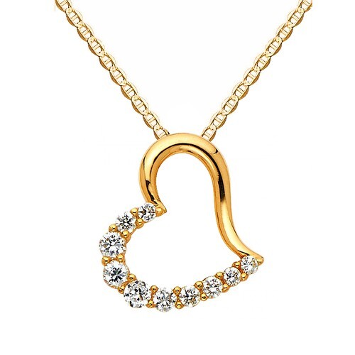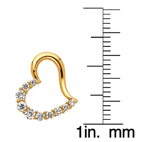 Genuine 14k Yellow Gold 0.59" Cubic Zirconia Sideways Heart Slider 18" Necklace