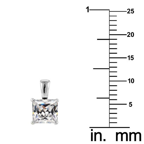 Genuine 14k White Gold 5mm Square Cubic Zirconia Solitaire Pendant For Women