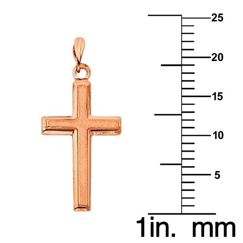 This exquisite cross pendant, crafted from 14k rose gold, serves as a beautiful and elegant addition to any casual wardrobe. Measuring 13 mm in width and 22 mm in length, the pendant boasts a refined satin finish in its center, highlighting its intricate design. This piece maintains a delicate feel while ensuring durability. The pendant's bail is designed to comfortably fit any chain up to 2.5 mm wide, providing versatility for personal styling. It pairs wonderfully with your favorite chain, making it an ideal choice for both everyday wear and special occasions. Moreover, it makes for a thoughtful gift that can hold personal significance for loved ones. Please note that the chain is not included, allowing individuals to pair the pendant with a style that suits their preferences. All weights and measurements are approximate and may vary slightly for each piece, ensuring a unique experience with every purchase.