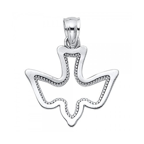 Genuine 14k White Gold 0.59" Milgrain Holy Spirit Dove Pendant For Men or Women