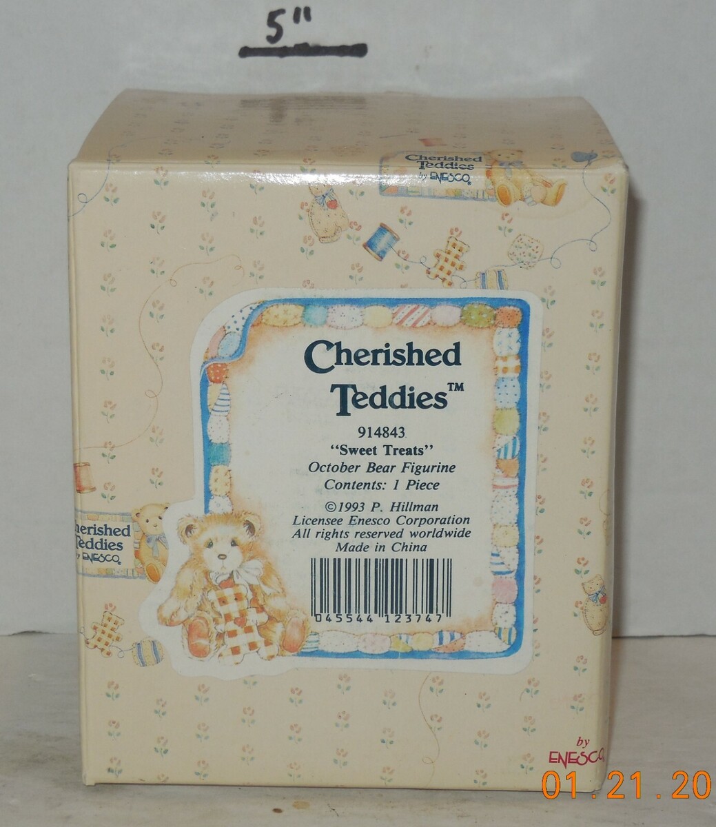 For Sale is a cherished teddies ?Sweet Treats? 1993 #914845. it in good condition as seen in the pictures provided what you see is what you will receive. Please ask Any and All Questions prior to purchasing. Fast Same or Next day shipping with Free Delivery Confirmation within the U.S. Payment Due within 7 days of purchase (if you need more time please let us know In advance) we love to combine shipping is always a Yes and Most of the time Additional Items Ship for free.