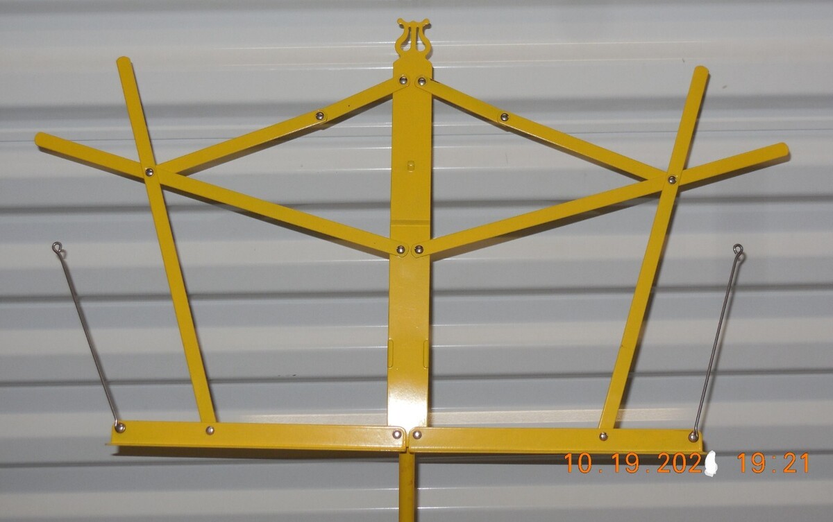 For Sale is a Yellow Adjustable Folding Music Stand Compact Travel. its In Good USED Condition as Pictured. Please see photos for more details. Please ask any and all questions prior to purchase. What you see is what you will receive. we never use Stock Photos. item may have some slight paint wear do to age and or storage wear. Please ask Any and All Questions prior to purchasing. a little about the the Music Stand: