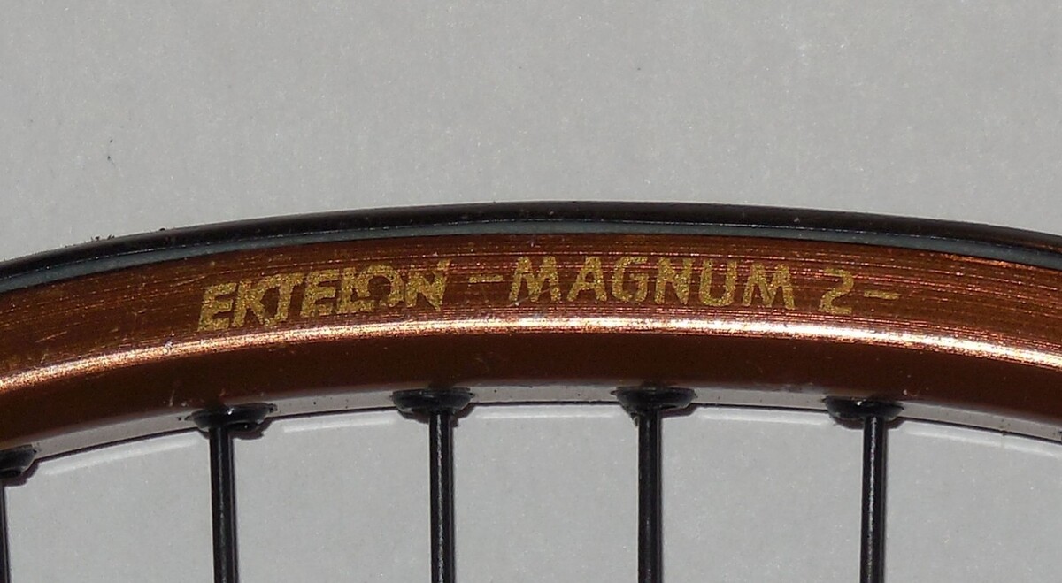 For Sale is a vintage Ektelon Magnum 2 Racquetball Racquet. its in good used Condition as pictured. Loos to have been Spray painted Gold. Please ask Any and All Questions prior to purchasing. Fast Same or Next day shipping with Free Delivery Confirmation within the U.S. Payment Due within 7 days of purchase (if you need more time please let us know In advance) we love to combine shipping is always a Yes and Most of the time Additional Items Ship for free.