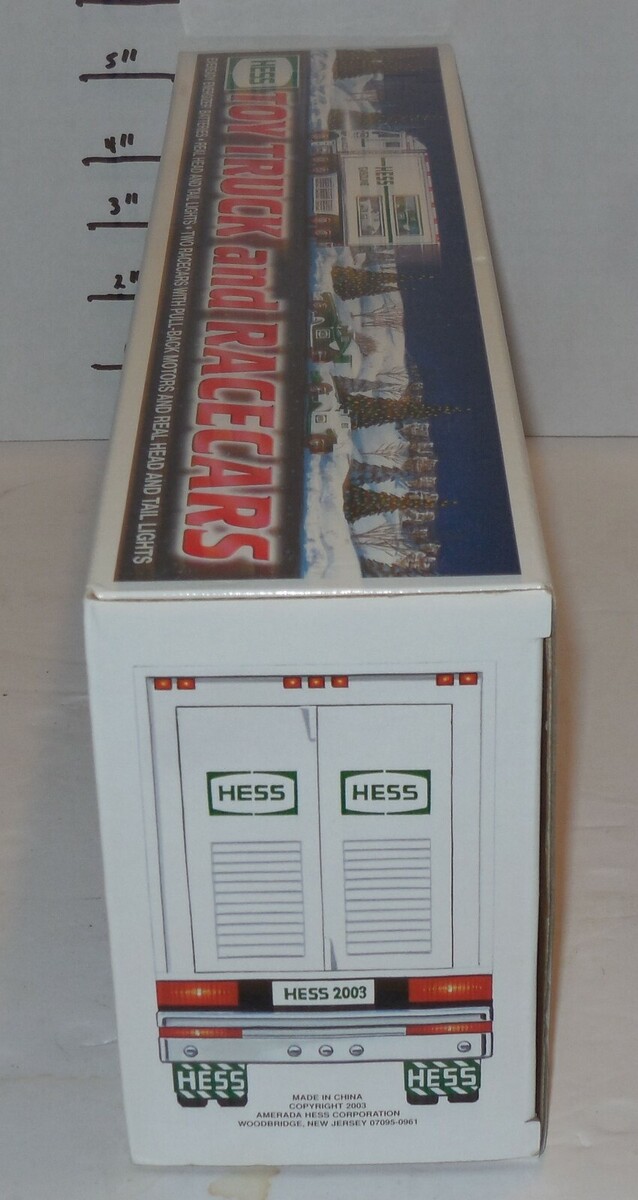 For Sale is a rare and hard to find 2003 Hess TOY TRUCK AND RACERCARS NIB New In BOX as pictured in good condition. What you see is what you will receive if its not pictured its not included. would make a wonderful addition to any Toy collection. Please ask Any and All Questions prior to purchasing. Fast Same or Next day shipping with Free Delivery Confirmation within the U.S. Payment Due within 7 days of purchase (if you need more time please let us know In advance) we love to combine shipping is always a Yes and Most of the time Additional Items Ship for free.