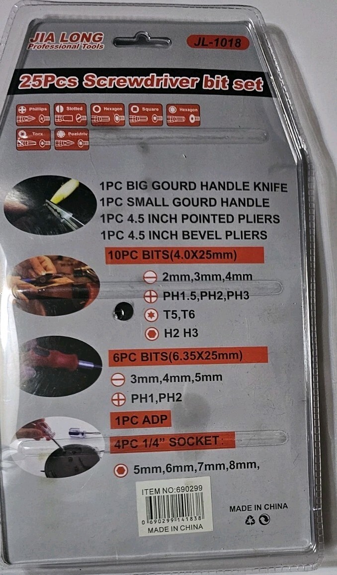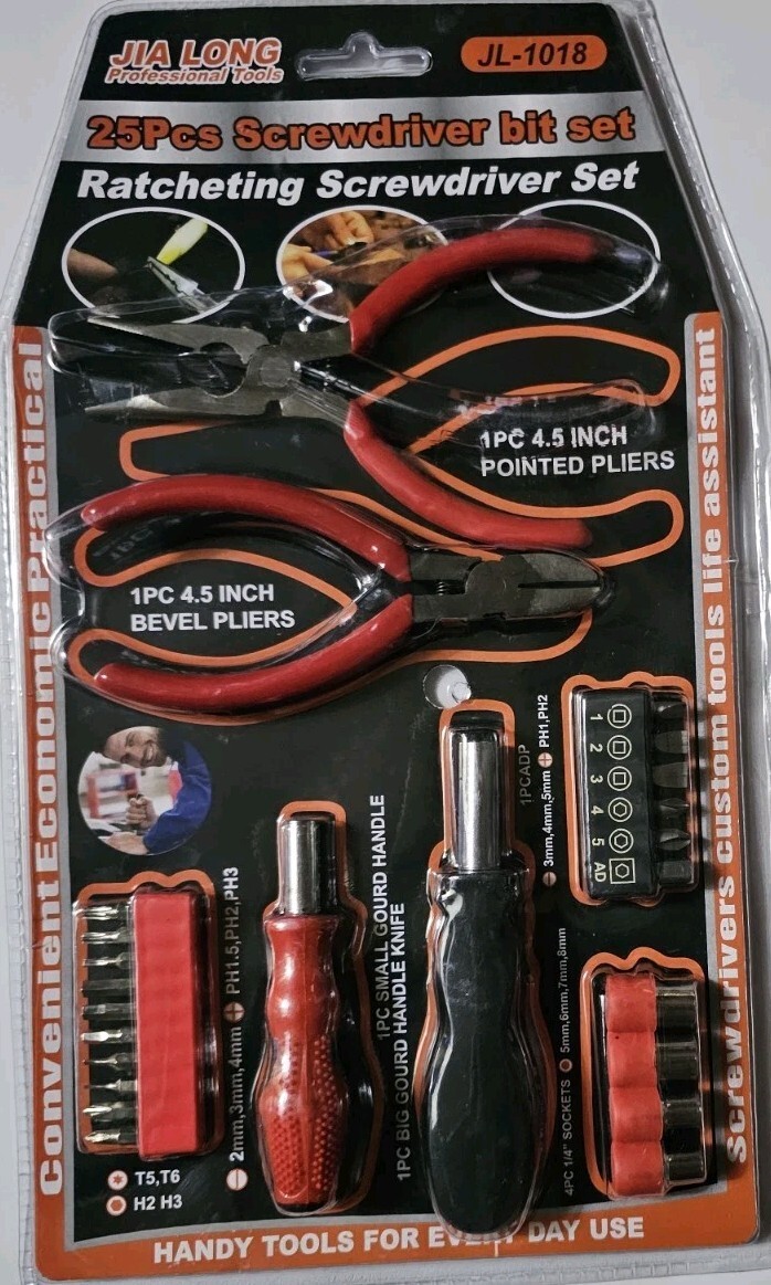 jia long professional tools jl-1018 Ratcheting 25 piece screwdriver Bit Set