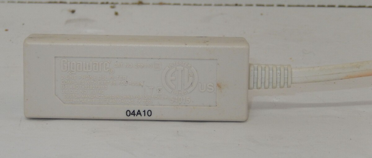 For Sale is a Gigaware 2 line Phone DSL Filter 279-110. it in good Used condition with as seen in the pictures provided what you see is what you will receive. Please ask Any and All Questions prior to purchasing. Fast Same or Next day shipping with Free Delivery Confirmation within the U.S. Payment Due within 7 days of purchase (if you need more time please let us know In advance) we love to combine shipping is always a Yes and Most of the time Additional Items Ship for free.