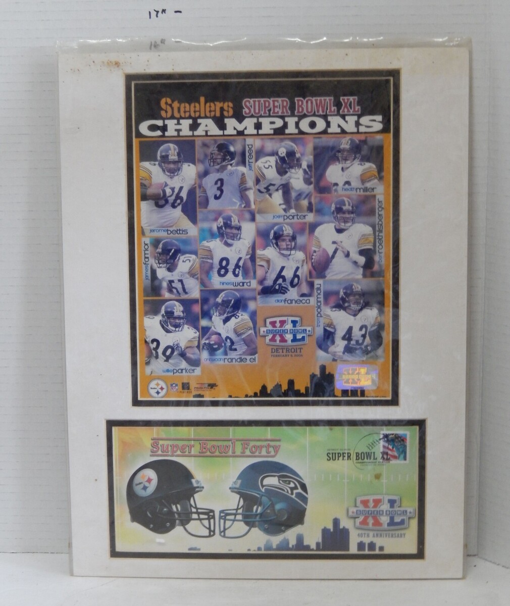 Pittsburgh Steelers Super Bowl 40 XL Champs Matted Photo w/ USPS Cancel Stamp