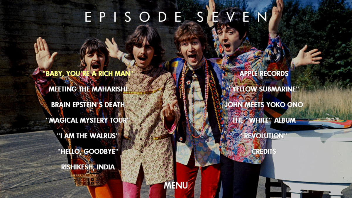 The Beatles Anthology traces the group's legendary journey which began in Liverpool and Hamburg and soon captivated the world. Over the course of eight episodes (nearly NINE HOURS!!), it brings to life the timeless stories ? of Beatlemania, the band?s groundbreaking arrival in the USA, their role at the forefront of the 1960s counterculture, their spiritual exploration in India, and their eventual breakup. And through it all, the constant thread: the music, always the music.
