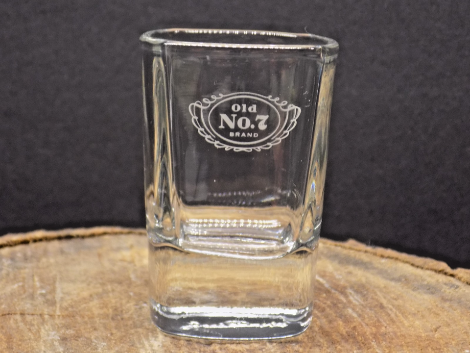 Celebrate the legacy of Jack Daniels Old No. 7 Brand with this distinctive square shot glass, featuring Jack?s signature etched on the bottom. Unlike standard round shot glasses, this piece stands out with its bold square shape and authentic detailing.