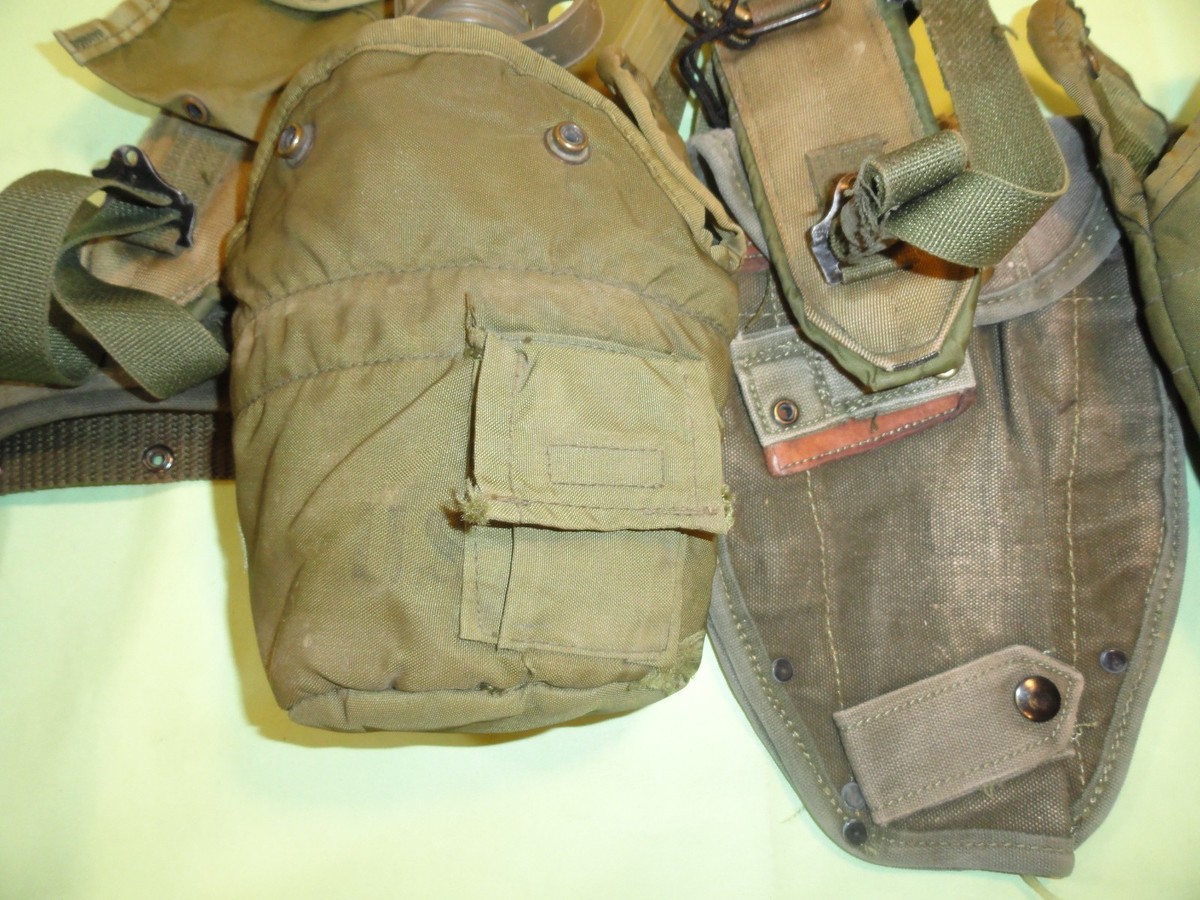 POUCHES AND ACCESSORIES SHOWS WEAR : I COULD EASILY WASH THIS WHOLE RIG, BUT I BELIEVE EVERY SCUFF, EVERY MARKING, EVERY SCRAPE IS A BATTLE SCAR FROZEN IN TIME. EVEN WHEN A SOLDIER, AIRMAN, MARINE, SAILOR WRITES THEIR NAME OR UNIT ON THEIR EQUIPMENT ITS A PIECE OF ART THAT LIVES FOREVER.