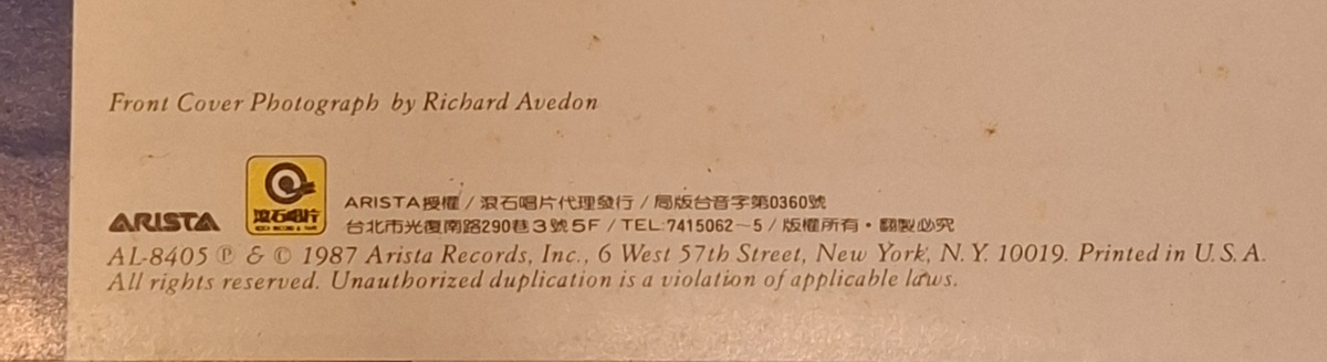 Rare Taiwan pressing of Whitney Houston?s classic 1987 album Whitney.