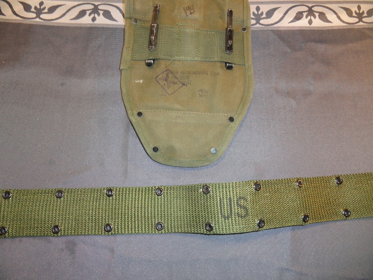 POUCHES AND ACCESSORIES SHOWS WEAR : I COULD EASILY WASH THIS WHOLE RIG, BUT I BELIEVE EVERY SCUFF, EVERY MARKING, EVERY SCRAPE IS A BATTLE SCAR FROZEN IN TIME. EVEN WHEN A SOLDIER, AIRMAN, MARINE, SAILOR WRITES THEIR NAME OR UNIT ON THEIR EQUIPMENT ITS A PIECE OF ART THAT LIVES FOREVER.
