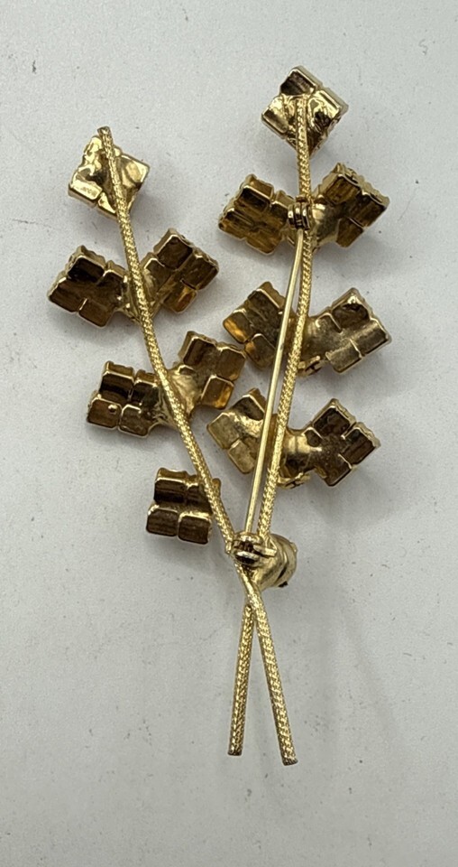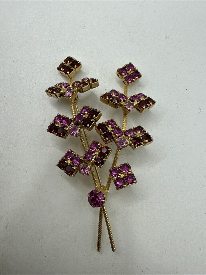 Gorgeous PINKS RHINESTONE 3" Vintage LONG STEM FLOWER Pin Brooch Unbranded