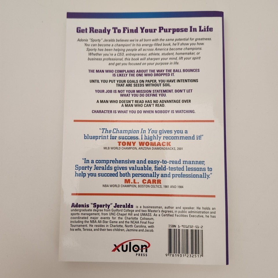 Very good condition easy read softbound paper book The Champion In You by Adonis "Sporty" Jeralds