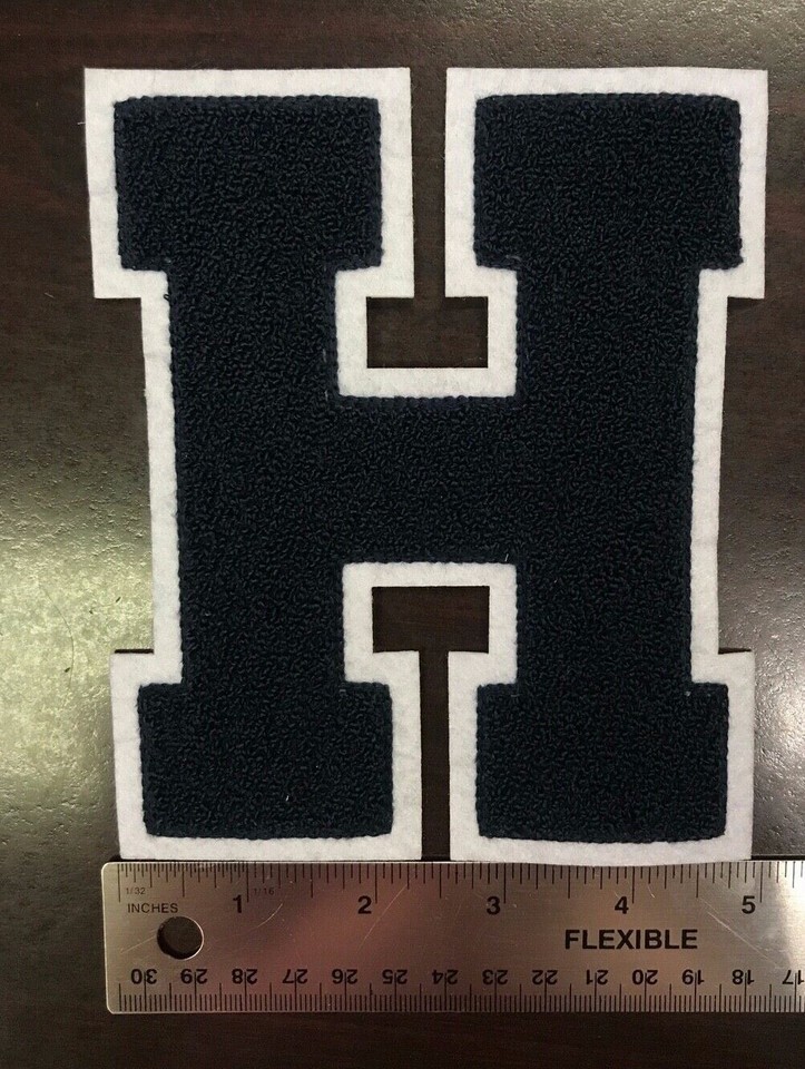 Varsity Letter H School Letterman Navy Chenille Patch on White Felt 6" High New
