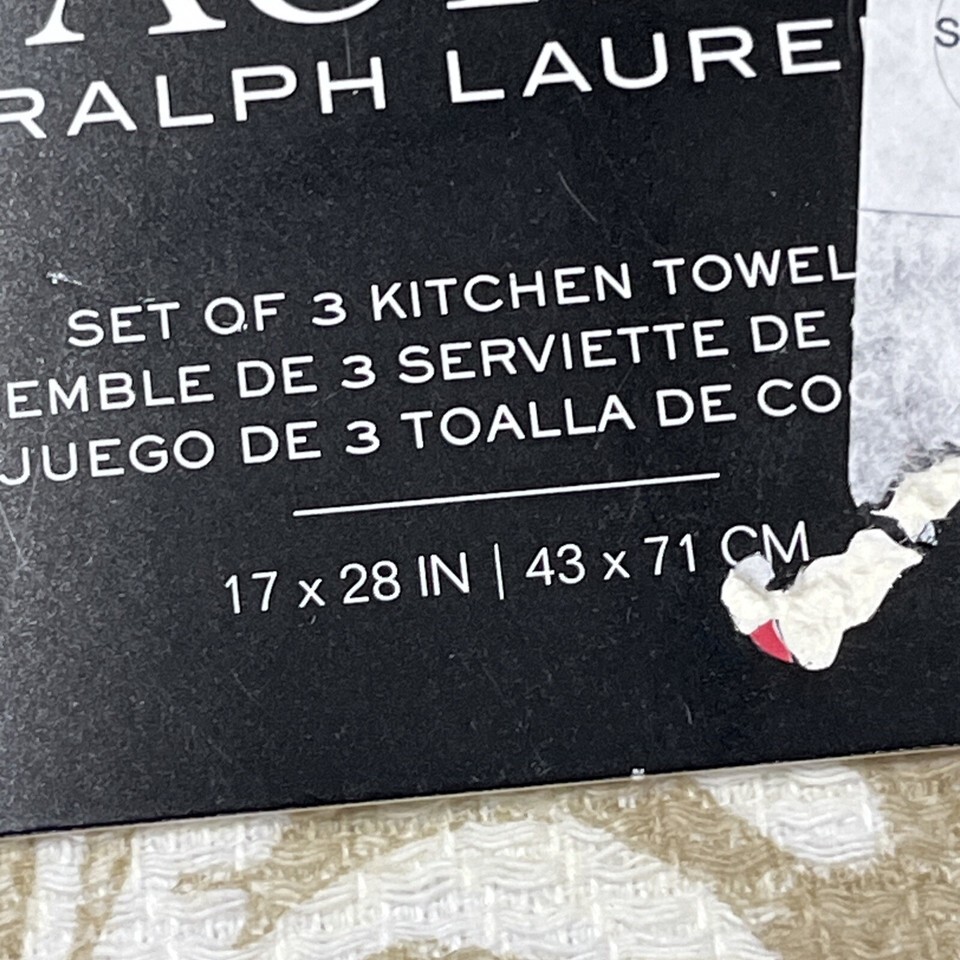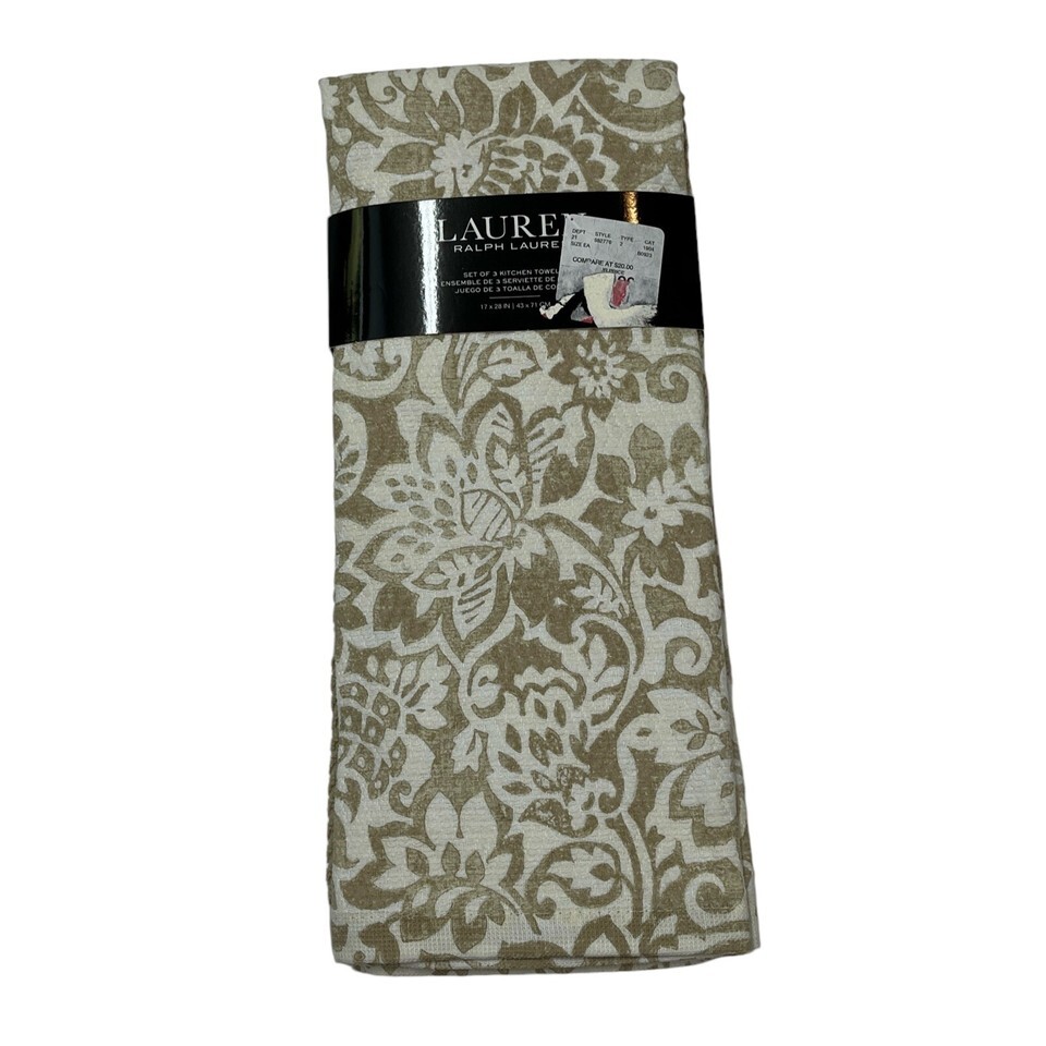 Lauren Ralph Lauren Dish Towell Tibby Linen Kitchen Set Of 3 Tan Scroll Classic