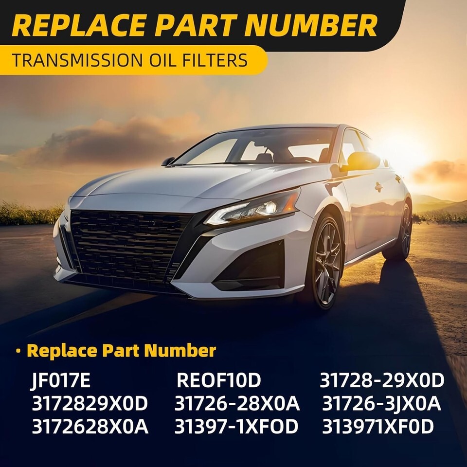Transmission Oil Filter Kit Compatible With RE0F10D, JF017E Transmissions.Suitable for Nissan Vehicle:2017 Juke; 2016-2018 Altima; 2016-2023 Maxima/Murano; 2017-2020 Pathfinder; 2016-2017 Quest.Suitable for 2016-2019 Infiniti QX60.