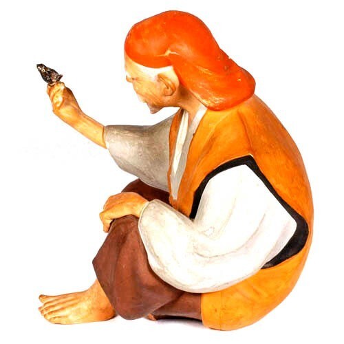 Vintage Japanese Hakata Urasaki Doll, Old Man Holding Small Bird