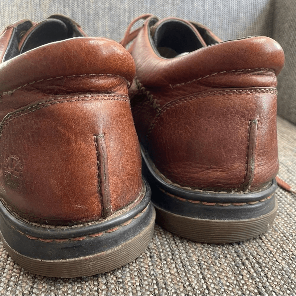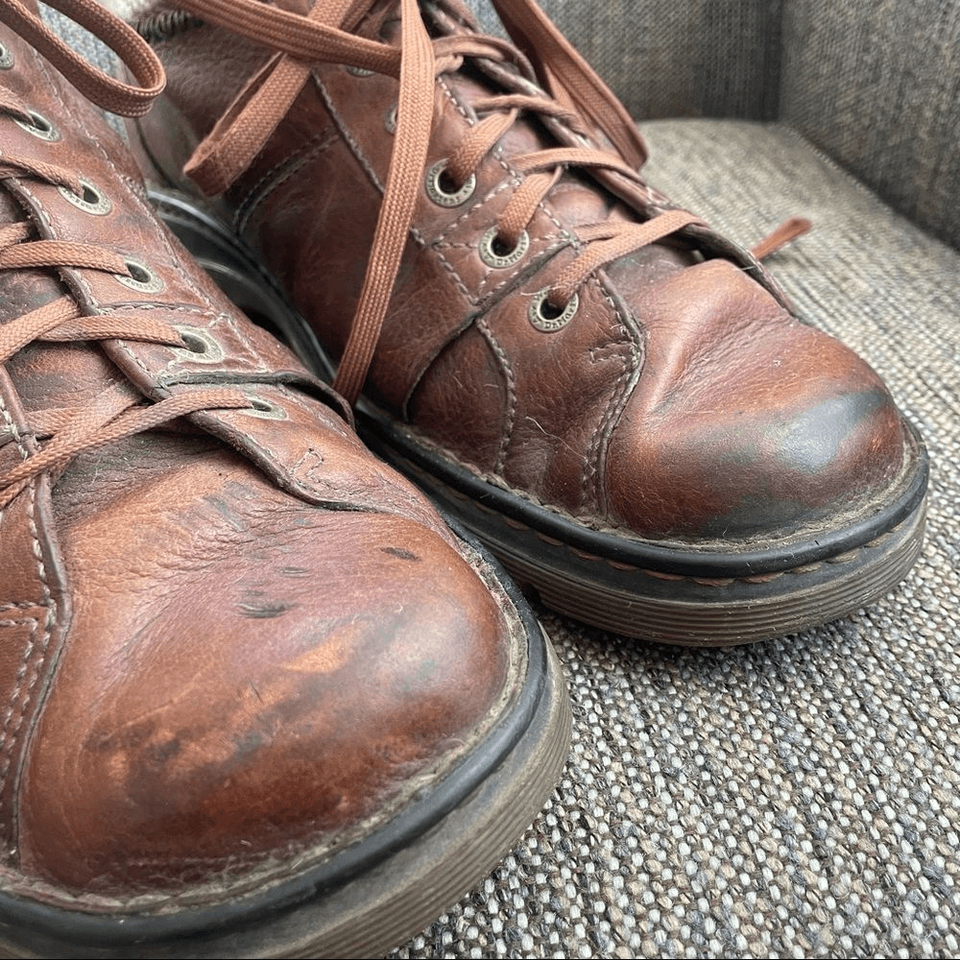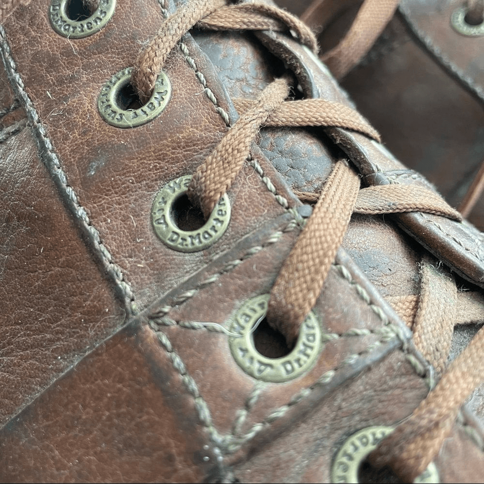 Vintage, well worn and comfortable, Dr Martens Lace up Low chukka boots. Obvious signs of wear include some creasing in the toes, scuffs in the leather, and wear to the insides and tread although there is lots of tread left. Traditional Doc Martin soles and logo eyes. Embossed logo at the outside heel on each shoe. Please see pictures for details. Made in Vietnam