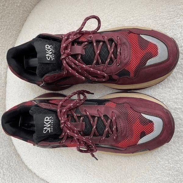 SNKR Project Park Avenue Wine Red Camo Innovative mixed media upper