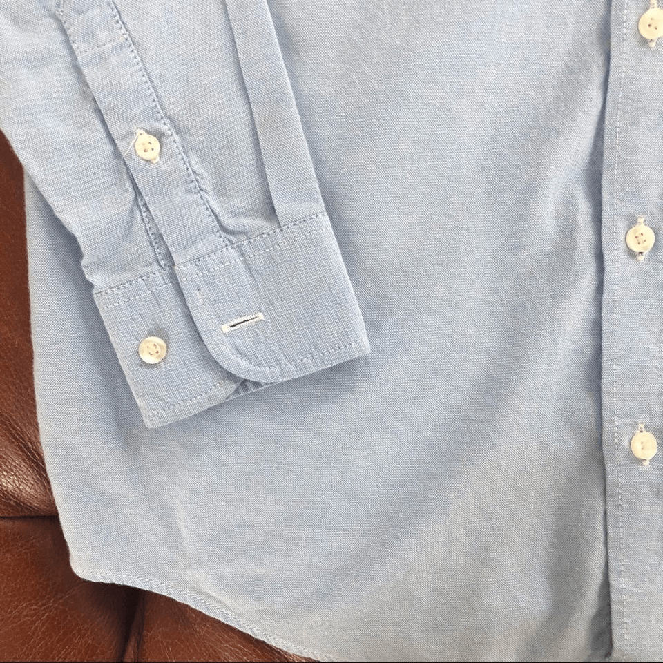 Youth size 16 traditional blue button down collar dress shirt by chaps. Measurements are approximate and taken while laying flat. What is 6 inches from shoulder to hem and 18 inches from armpit to armpit