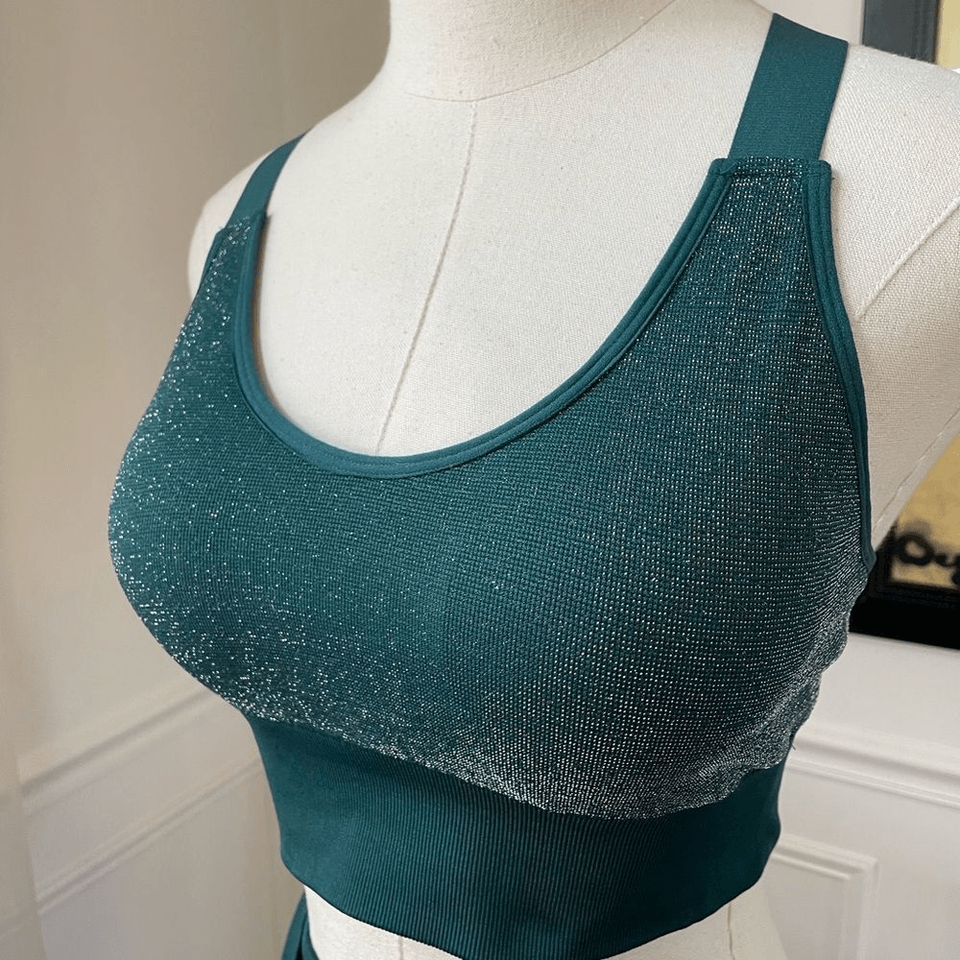 ASOS South Beach Seamless Shimmer Green Silver Leggings Sports Bra Activewear Se