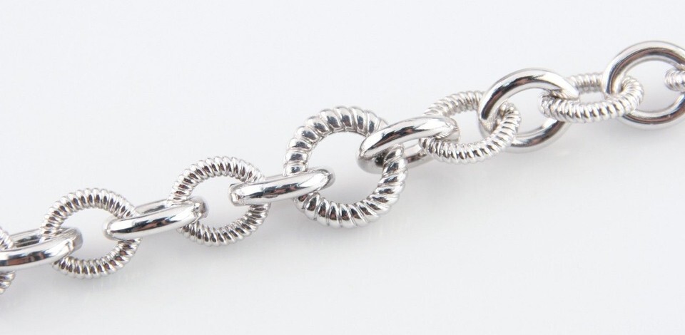 Features Alternating Textured and Plain Sterling Silver Loop Links