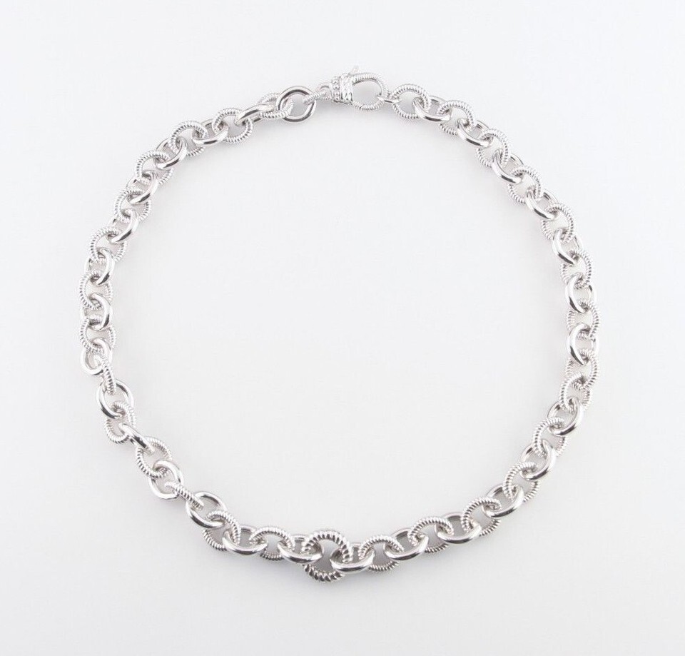Judith Ripka Sterling Silver Rolo Chain Link Necklace 17" Great Condition!