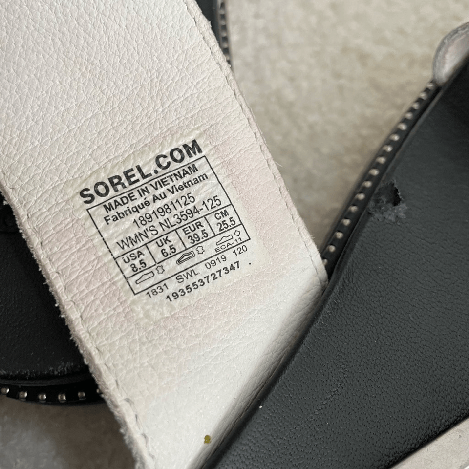 Women's Sorel, Roaming Buckle Slide Sandal. Gently preowned with some minor nicks to the black around the foot bed. See photos. Not super obvious.