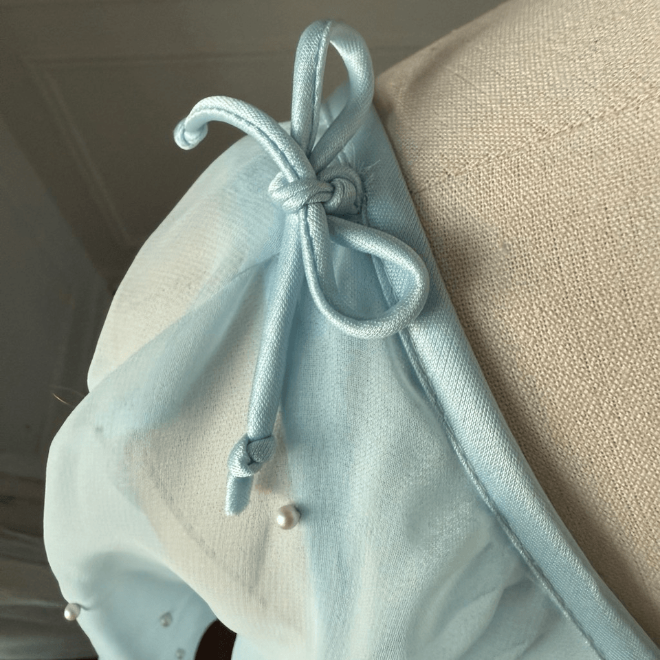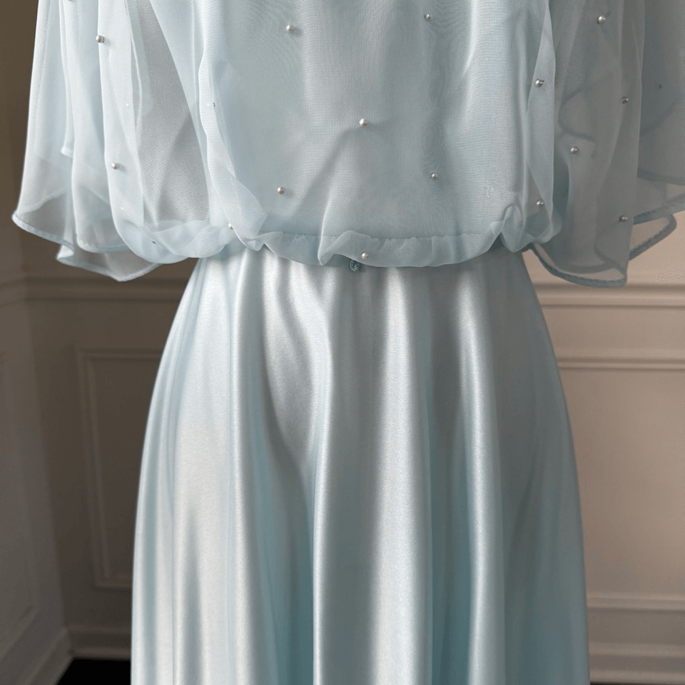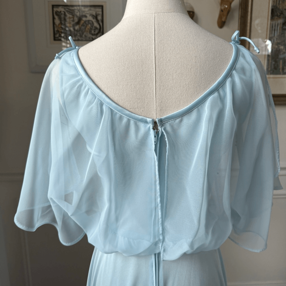 Vintage 70s Baby Blue Pearl Caplet Formal Dress Gown XS
