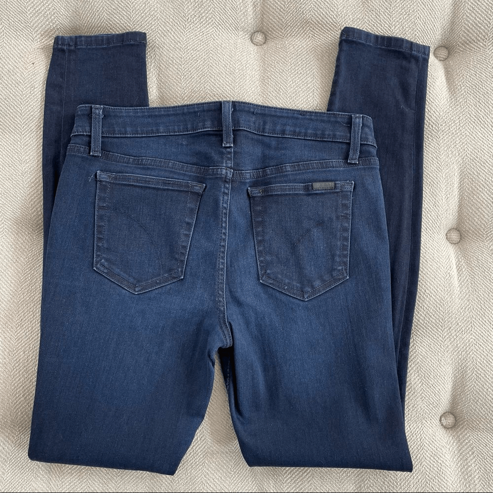 Joe?s jeans the skinny dark wash. Measurements are approximate and taken while laying flat: 9.5 inch rise, 15.5 inches straight across the waist and 31 inch inseam