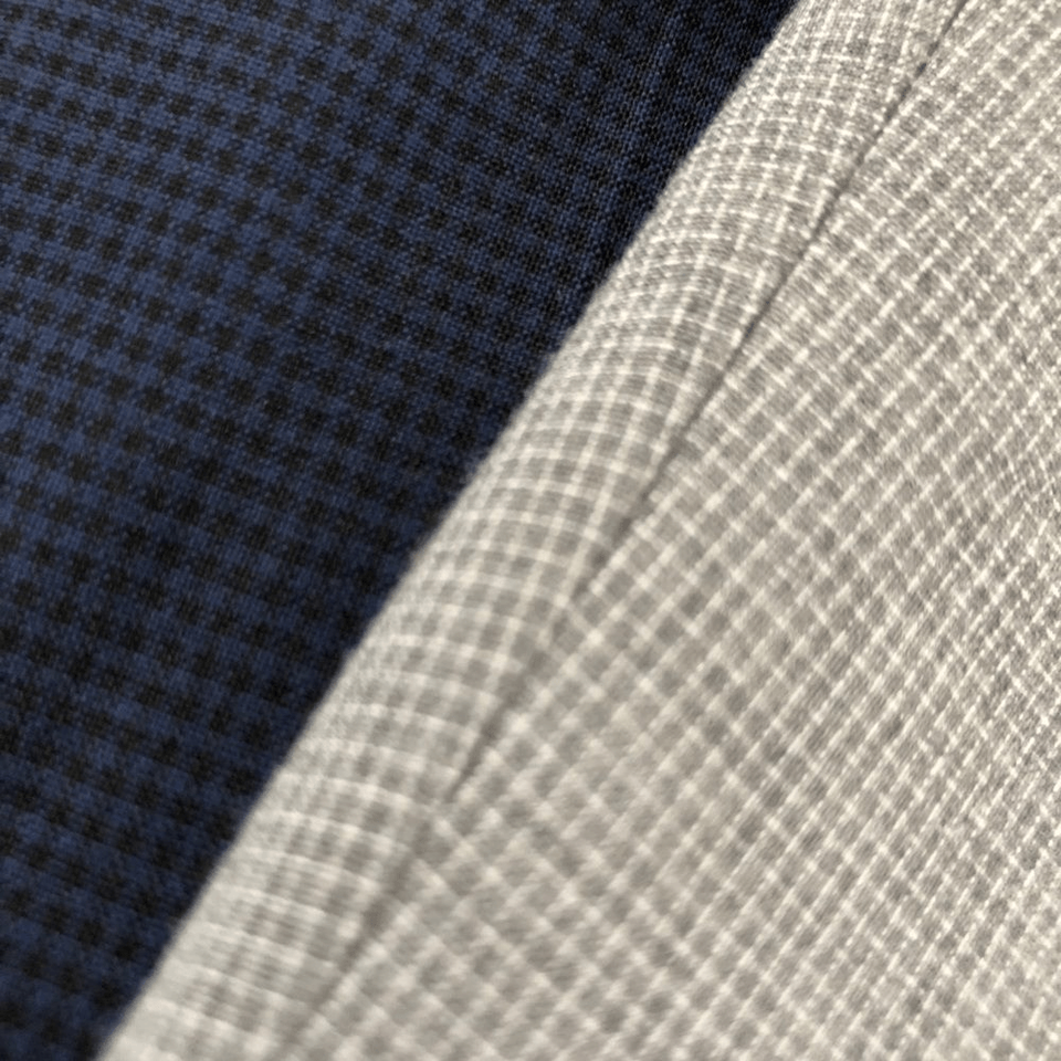Two pair of Walter Hogan men?s dress pants with 36 inch waist and 24 inch inseam. First pair is dark blue with black check and second pair is gray check. Poly viscose blend with the blue pair having a touch of spandex. Waist measures 18 inches straight across and inseam has been altered to 24 inches