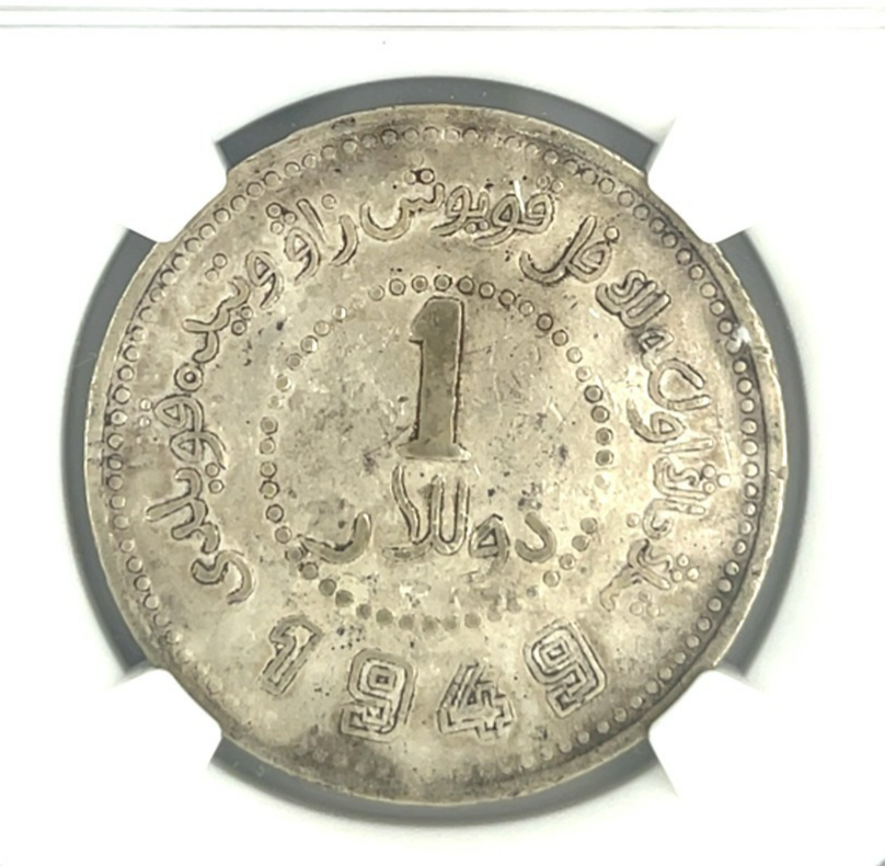 1949 China S$1 Dollar Sinkiang L&M-842 Pointed Base 1 by NGC as XF DETAILS!