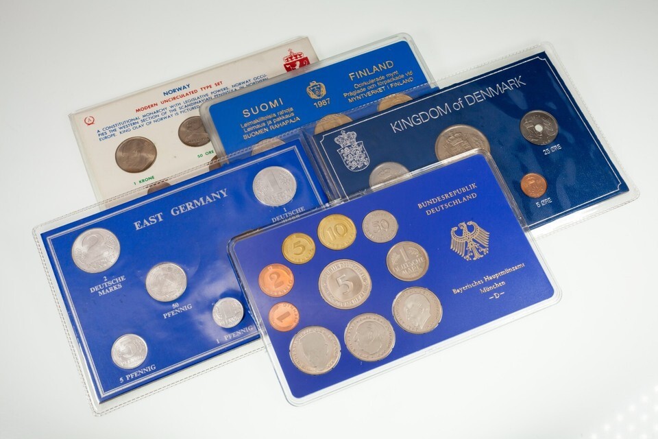 Lot of 5 Coin Sets From Denmark, East Germany, Finland, Germany Norway